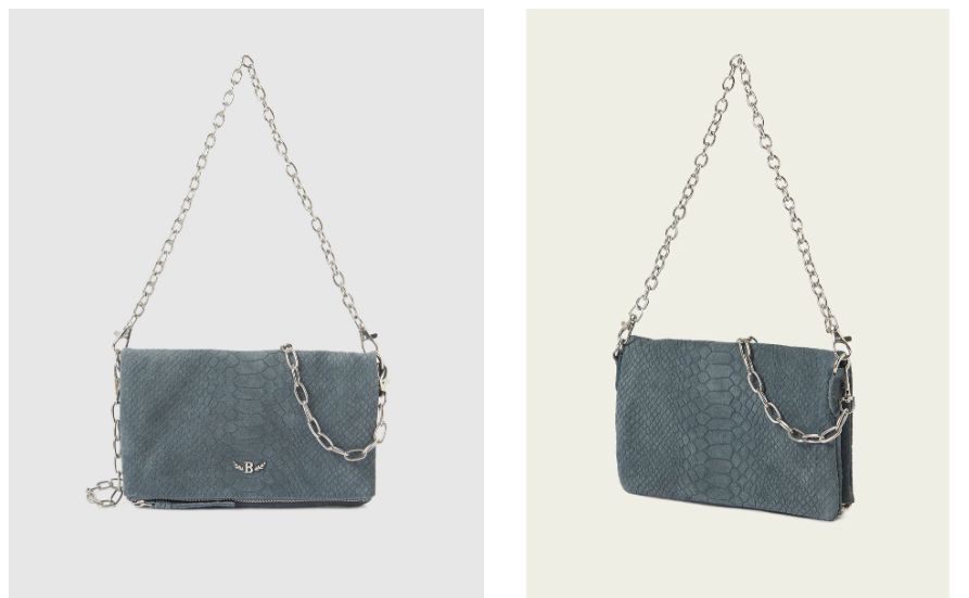 Se trata de un modelo en color azul con bonito relieve de efecto coco. Tiene también doble asa de cadena, una más larga para llevar como bandolera y otra más corta para el hombro. Tiene también su aplique metálico de la marca en la parte frontal. Si quieres hacerte con este modelo, que sepas que aquí es donde vas a poder encontrarlo. Su precio es de 49,90 euros.