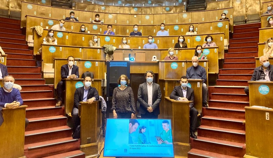 La Fundación Jiménez Díaz celebró recientemente su «I Curso Multidisciplinar de Monitorización Hemodinámica» para concienciar acerca de la necesidad de controlar el estado fisiológico del paciente, de acuerdo con el nivel de gravedad y complejidad de su enfermedad, y teniendo en cuenta las herramientas y recursos disponibles. Durante la formación los numerosos especialistas reunidos en ella intercambiaron inquietudes y opiniones con el objetivo de mejorar la monitorización clínica del paciente, especialmente en lo que se refiere al sistema cardiovascular.
