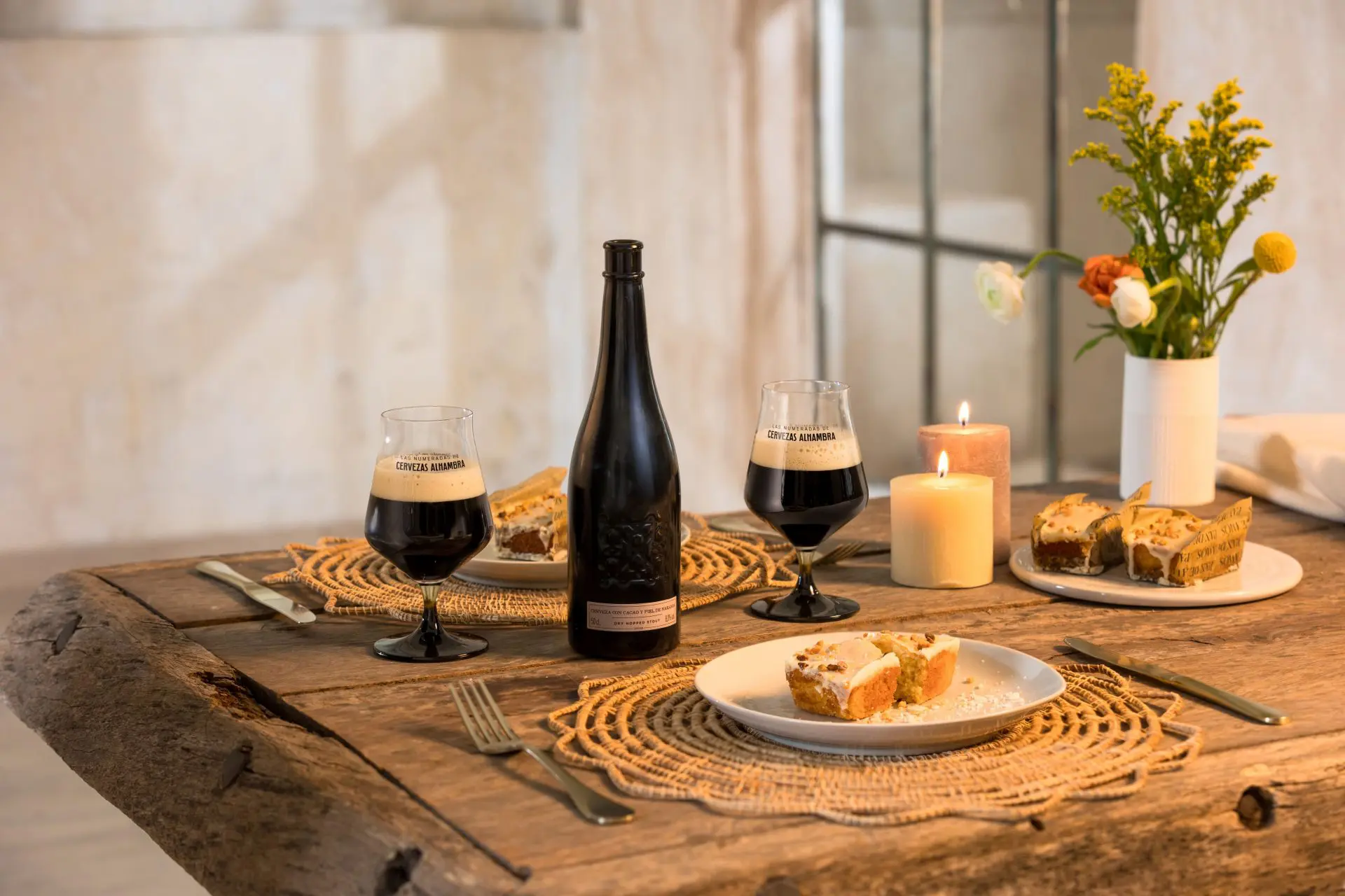 Se trata de una creación irrepetible considerada el maridaje perfecto para disfrutar de una merienda o incluso una sobremesa. Ideal para degustar en compañía, este pack está compuesto por Las Numeradas de Cervezas Alhambra Cacao y piel de naranja y Cacao y chile chipotle junto con una edición limitada del BizcochAMOS del Cenador de Amós de Pasión y Almendras. creación surgida en el restaurante, situado en la localidad cántabra de Villa de Pontones, y que ya forma parte de la gastronomía tradicional de estas fiestas. Igualmente las cervezas se pueden adquirir por separado.