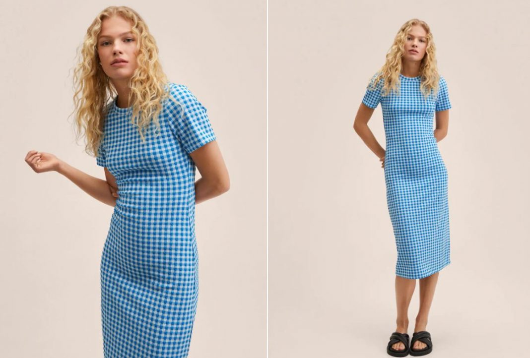 Volvemos a los vestidos, con este modelo perfecto para seguir con tu renovación de armario de cara al buen tiempo, si bien es un vestido que se puede llevar todo el año. Es a cuadros en color azul, de la colección Committed, con tejido elástico y estampado a cuadros de vichy, entallado, con cuello redondo y manga corta. No tiene cierre y está hecho en su mayoría en poliéster. Otro vestido perfecto para lucir en ambientes marineros y marítimos, pero igualmente deslumbrante en una reunión social. No pasarás desapercibida. Lo tienes en Mango por 25,99 euros.