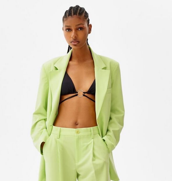 ¿Te has dado cuenta de que desde hace un tiempo hasta esta parte las chaquetas tipo blazers se han puesto muy de moda? Si quieres comprar una te recomendamos que te pases por cualquiera de las tiendas que Bershka tiene repartidas a lo largo del país, porque allí vas a poder encontrar esta que tiene un color verde muy bonito y que sale muy bien de precio. Tan solo cuesta 39’99 euros.