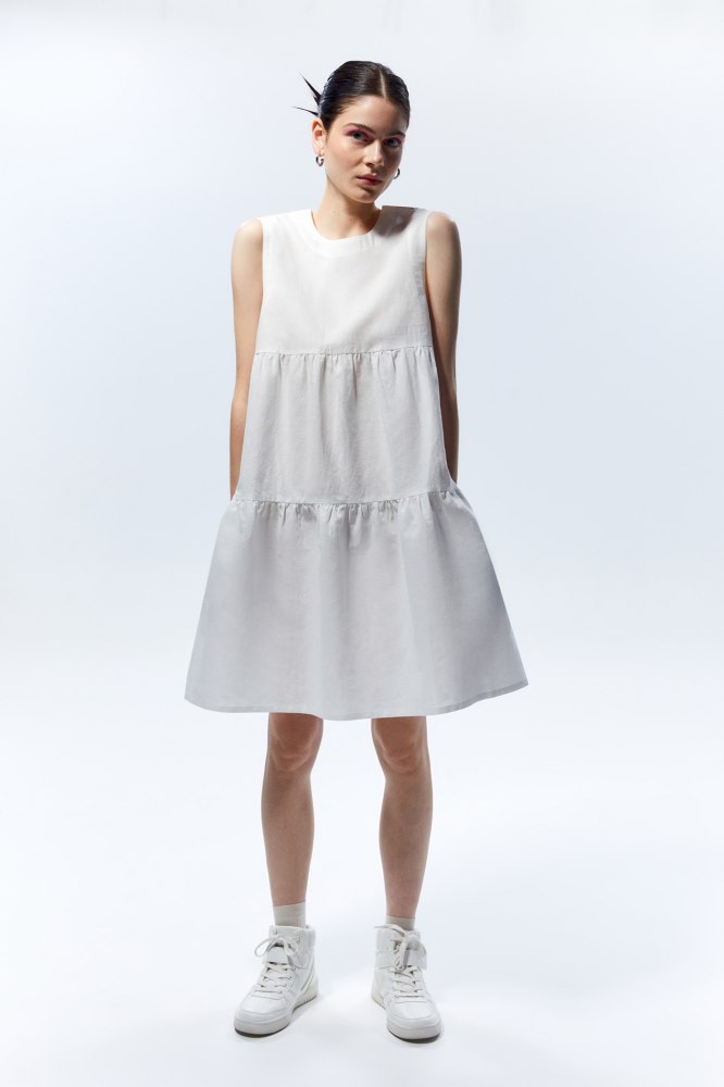 El lino es el tejido estrella cuando llega el buen tiempo. Ligero y muy cómodo, es casi como no llevar nada. Por eso, nos encanta que esta firma haya decidido incorporarlo en alguno de sus vestidos.
