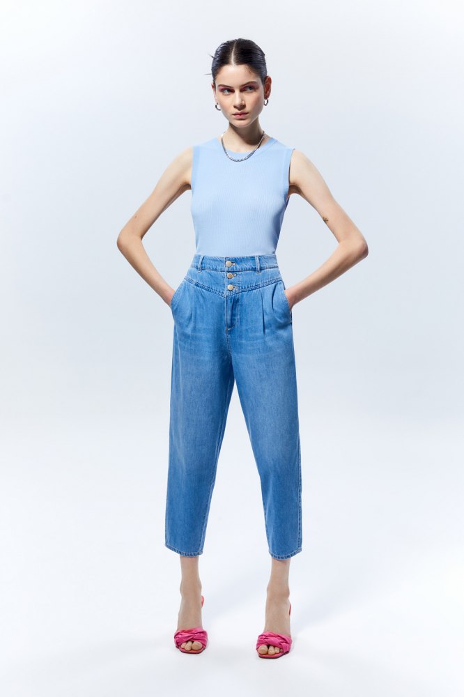 Este que te mostramos es totalmente atemporal, con cuello caja y manga sisa. Hemos escogido el modelo en color azul, pero también lo tienes en un llamativo verde y un bonito rosa.