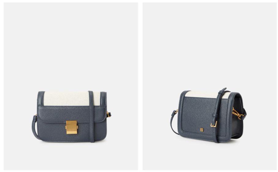 Pasamos al concepto de bandolera mini, concretamente con un modelo de la marca LT, que nos trae esta propuesta de lo más sofisticada, en color azul marino con un elegante broche en color dorado. Tiene un detalle blanco a contraste, y un asa larga regulable, con solapa y cremallera. En el interior tiene un bolsillo y las medidas son 7 (ancho) x 21 (fondo) x 14 (alto) cm. Perfecto si buscas un bolso clásico muy versátil que puedas combinar con todos tus looks. Lo tienes en El Corte Inglés por 49,99 euros. Este es el enlace.