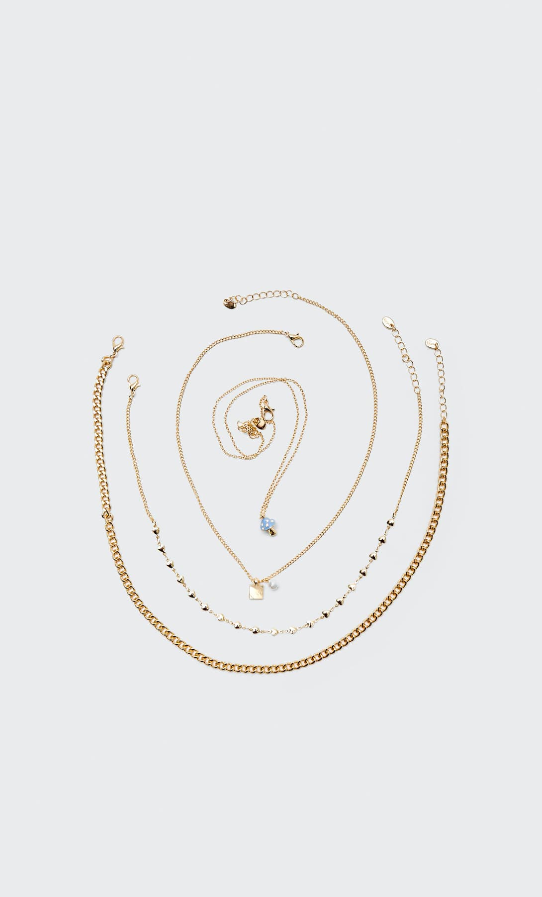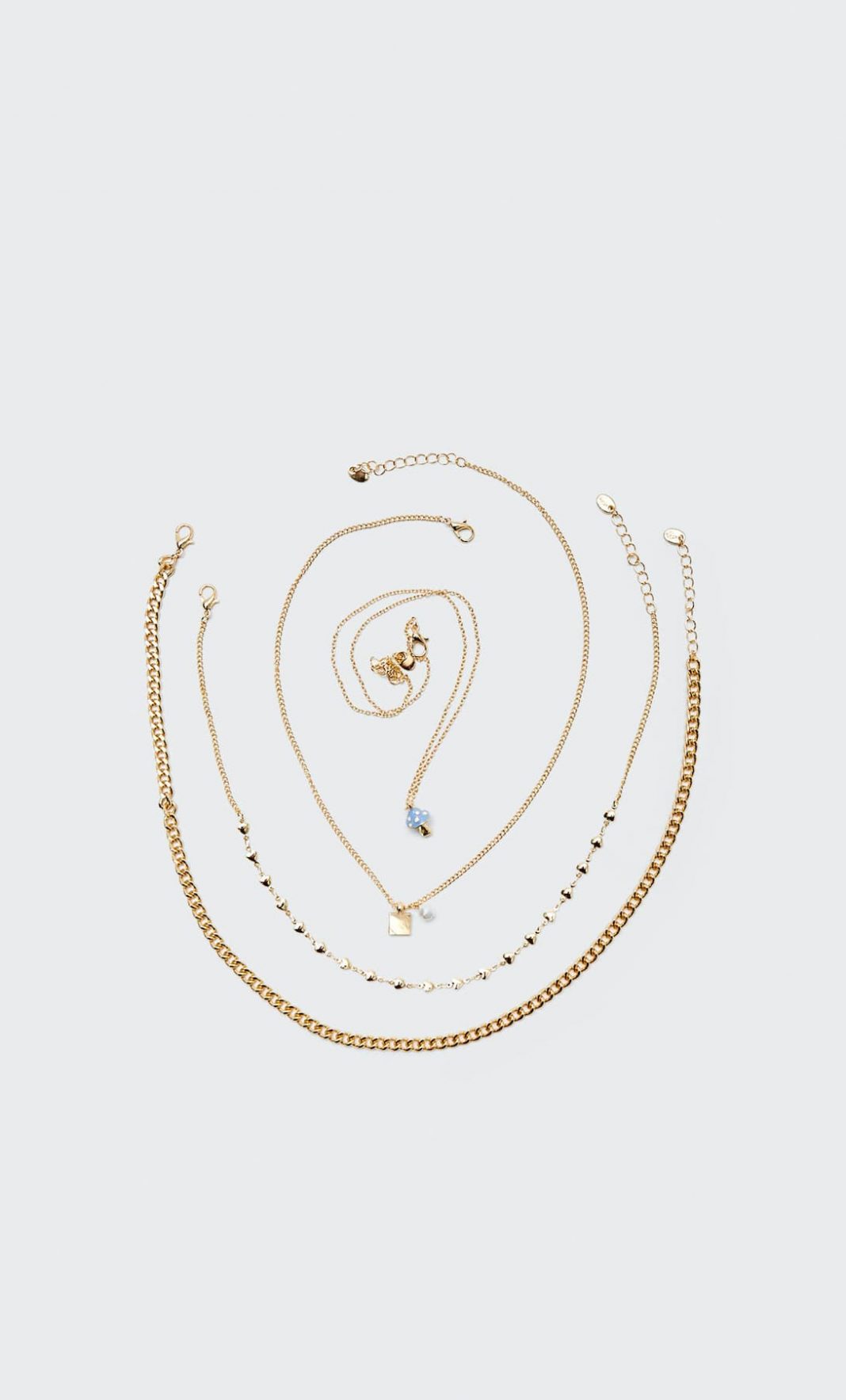 Stradivarius no deja de sorprendernos con sus diseños. Lo que más nos ha gustado de este set de cuatro collares es que incluye uno con un original colgante en forma de seta. Sin duda, se convertirá en tu favorito.