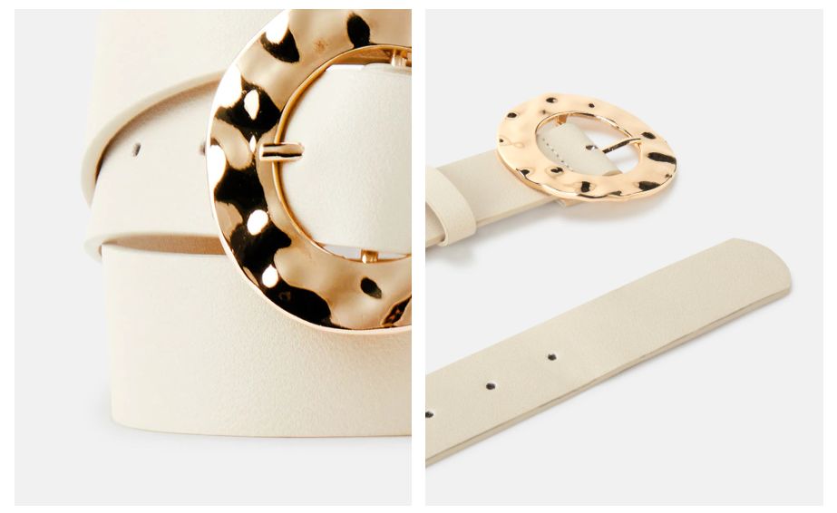 En este caso, se trata de un cinturón que destaca por ser de color blanco, pero principalmente por su hebilla redonda martelada, la cual se presenta en un llamativo tono dorado. Si quieres hacerte con este cinturón, que sepas que aquí es donde vas a poder encontrarlo. Y volvemos a precios mínimos porque este modelo se queda en 15,99 euros.