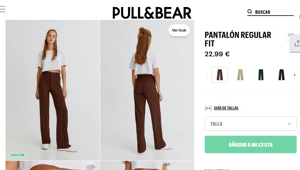 Pantalón de vestir regular fit disponible en varios tonos con detalle de costura delantera. Además, es de cintura con trabillas y cierre de botón y cremallera. Cuenta con un hermoso estilo y diseño por lo que la convierte en una prenda única. Inclusive, está fabricada con un material cómodo de usar. Si desean comprar este pantalón solo deben entrar a Pull&Bear por 22,99 €.