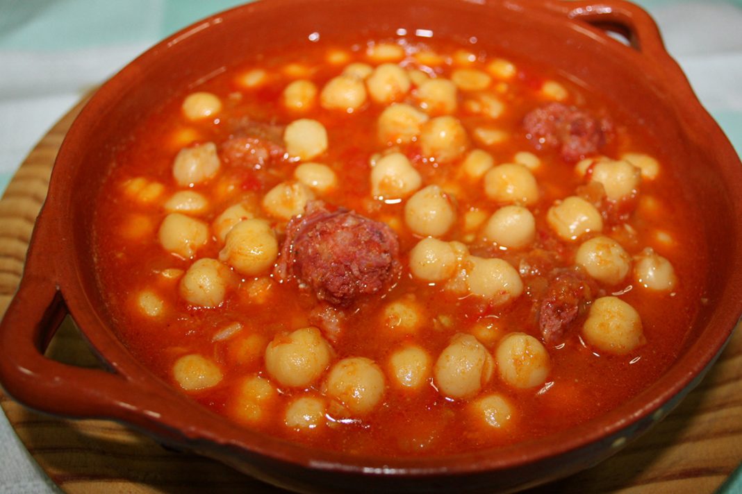 El potaje de garbanzos o de bacalao es un plato típico de la Semana Santa, pero lo podemos degustar en cualquier época del año. En una cazuela, dora un diente de ajo y luego retíralo. En el mismo aceite pocha un poco de cebolla, añade un poco de sal, y luego pimentón.