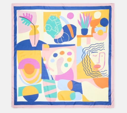 A continuación, te mostramos otro de los diseños de la firma Jo & Mr. Joe que tiene un precio inferior a los 20 euros, por lo que se trata de una oportunidad que no puedes dejar escapar. El pañuelo presume de un elegante estampado multicolor fantasía, junto con un marco azul y rosa. Si quieres hacerte con este, que sepas que aquí es donde vas a poder encontrarlo.