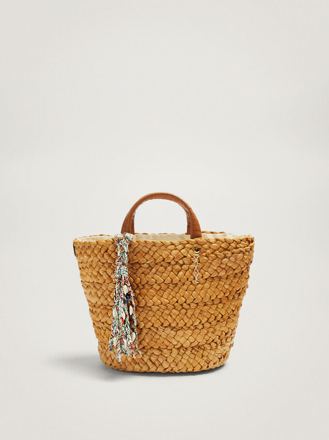 La nueva colección se inspira en lo tradicional y, por eso, este bolso tipo cesta de paja está causando auténtica sensación. Hecho a mano y con interior forrado. También lleva un colgante extraíble, como el modelo anterior.