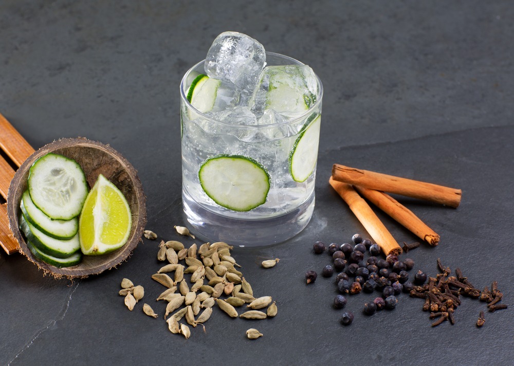 La ginebra, como decíamos, se elabora utilizando distintas especias, de ahí que tenga ese aroma y ese sabor tan especial. Se obtiene destilando cebada sin maltear a la que se añaden bayas de enebro, y se aromatiza con cardamomo, coriandro, pimienta, angélica, lirio, corteza de cassia o cáscara de naranja. Esta especie de infusión de hierbas transfieren a la bebida algunas propiedades beneficiosas.