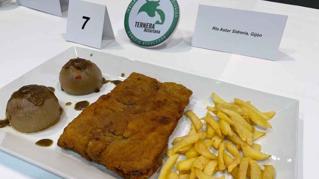 El premio al mejor cachopo de este año ha sido para la sidrería La Manzana (Oviedo). Elaborado con ternera asturiana, jamón serrano, quesos oscos y vidiago, y regado con salsa de cabrales.