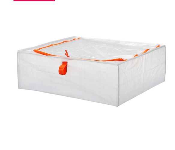 En Ikea no solo vas a encontrar cajas de almacenaje para guardar tus cosas. También vas a encontrar bolsas como estas que ves en la imagen. Se trata de un sistema de almacenamiento que es ideal para guardar de todo, adornos, ropa de cama o lo que sea. Su precio es de tan solo 2’50 euros.