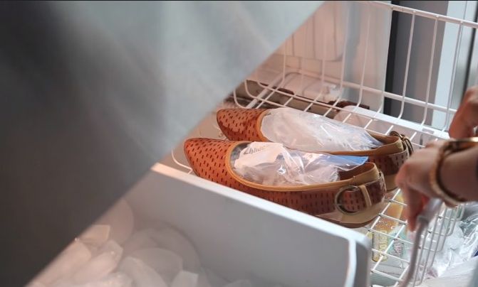 La idea es que el agua de la bolsa se congele y estire la piel del calzado para darlo un poco de sí. Es importante que tras haber hecho esto, te pongas las sandalias para que se adapten rápidamente a la forma de tus pies.