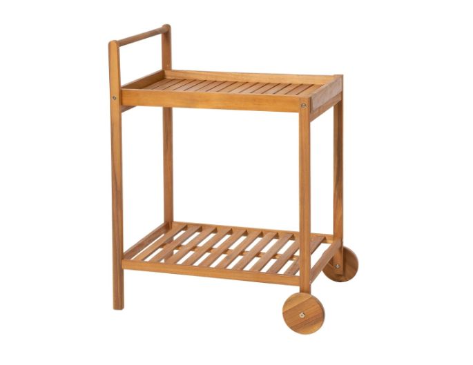 Terminamos con un elemento de lo más práctico y cómodo, para trasladar todo lo necesario de la cocina de la casa al jardín o terraza. Es un carro de servicio Tahoma, hecho en madera de acacia, un material resistente e idóneo para muebles de exterior.