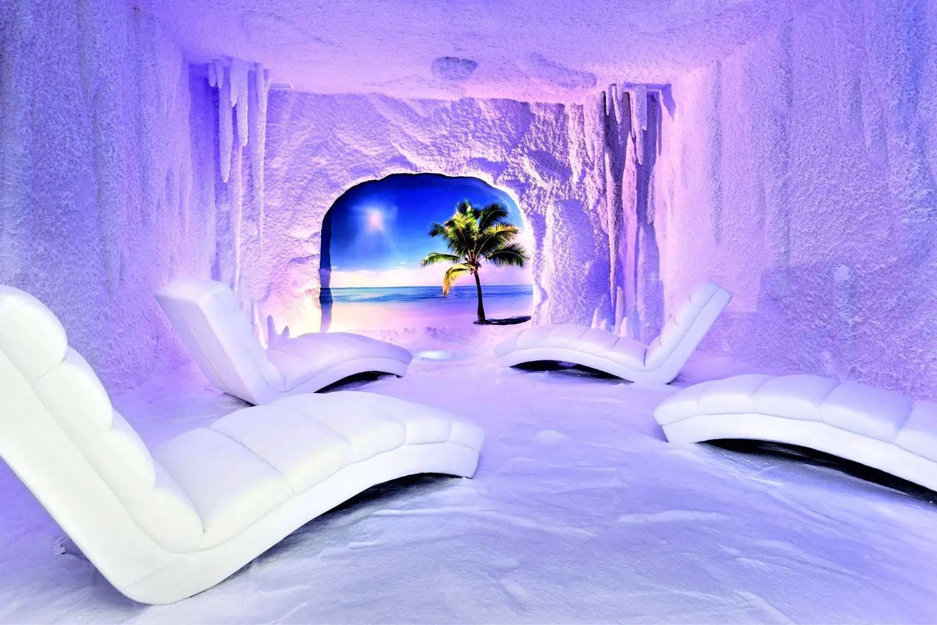 Para lograr una mayor efectividad, la haloterapia recrea un ambiente totalmente relajante que invita al descanso, a través de musicoterapia y cromoterapia.