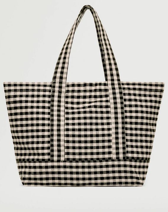 ¿Te has dado cuenta de que desde hace un tiempo hasta esta parte los bolsos tipo shopper se han puesto muy de moda? Ello se debe a que debido a su tamaño son muy prácticos, ya que en su interior puedes meter en ellos cualquier cosa que necesites. Este destaca por estar confeccionado con un tejido mezcla de algodón reciclado y por tener un estampado de cuadro vichy. Su precio es de tan solo 19’99 euros.