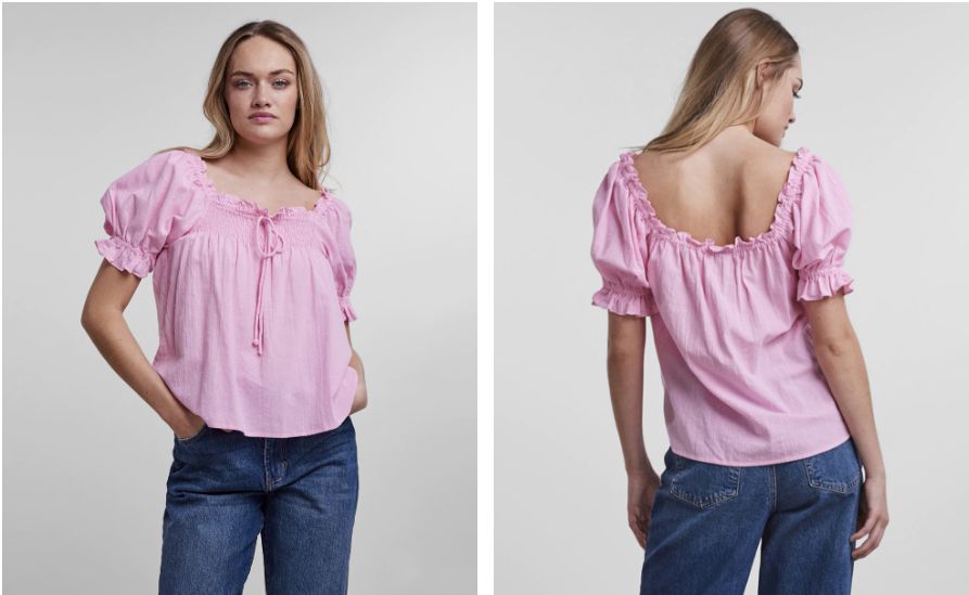 No abandonamos la marca Pieces con otra propuesta ideal en El Corte Inglés. Se trata de esta bonita y vaporosa camisa de mujer en manga corta y en color rosa claro exclusivamente. Es un modelo de manga corta y de globo con detalle de cordón en el escote. Está fabricada 100% en algodón y es perfecta para cualquier ocasión, igual social que en una escapada, una jornada de terraceo y paseo, etc. Su precio en la cadena española es de 34,99 euros, y en este enlace es tuya en dos clics.