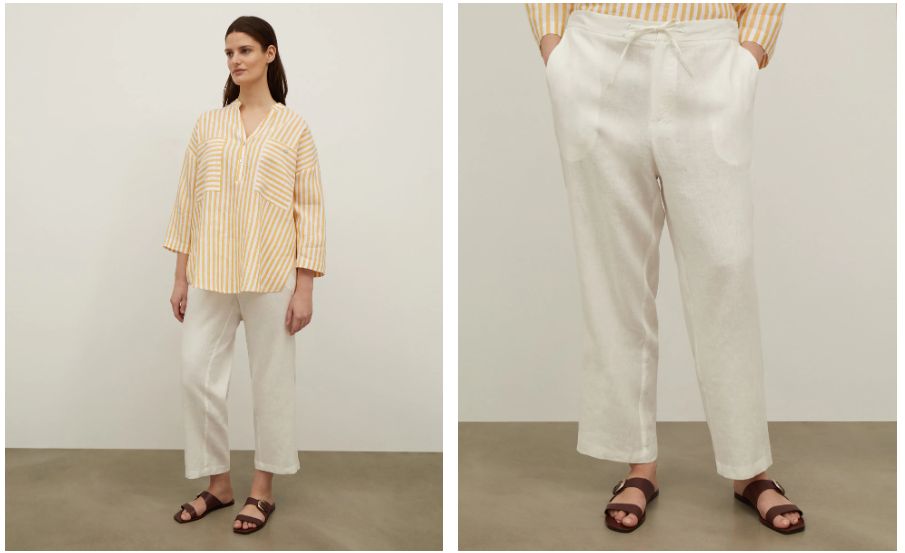 Volvemos al pantalón. La marca Couchel es especialista en tallas grandes, con propuestas llenas de estilo y a la moda, como estos pantalones de lino, ideales para esos días de calor en los que la comodidad es lo primero. Tienen una forma recta, con dos amplios bolsillos laterales y cierre con cinta a la cintura.