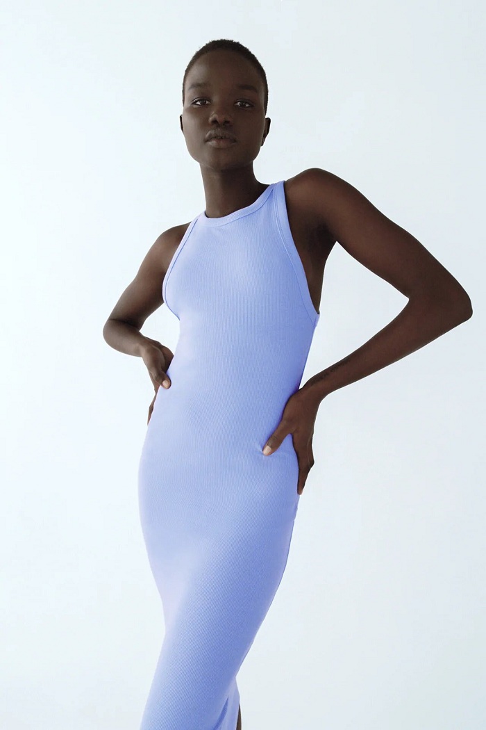 En Zara puedes encontrar diseños de vestidos ajustados que se ven de maravilla para el día a día. También se trata de un diseño sencillo que podrás encontrar disponible en varios colores. Estos son el blanco, naranja, negro y azul claro, como puedes ver en la imagen que encabeza estas líneas.