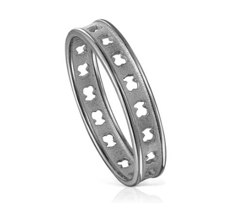 Aquí tienes la versión en plata oscura del anillo Tous Bear Row. Un original aro de plata con siluetas de oso perforadas a lo largo de toda la superficie. Plata de primera ley recubierta con baño de rutenio.