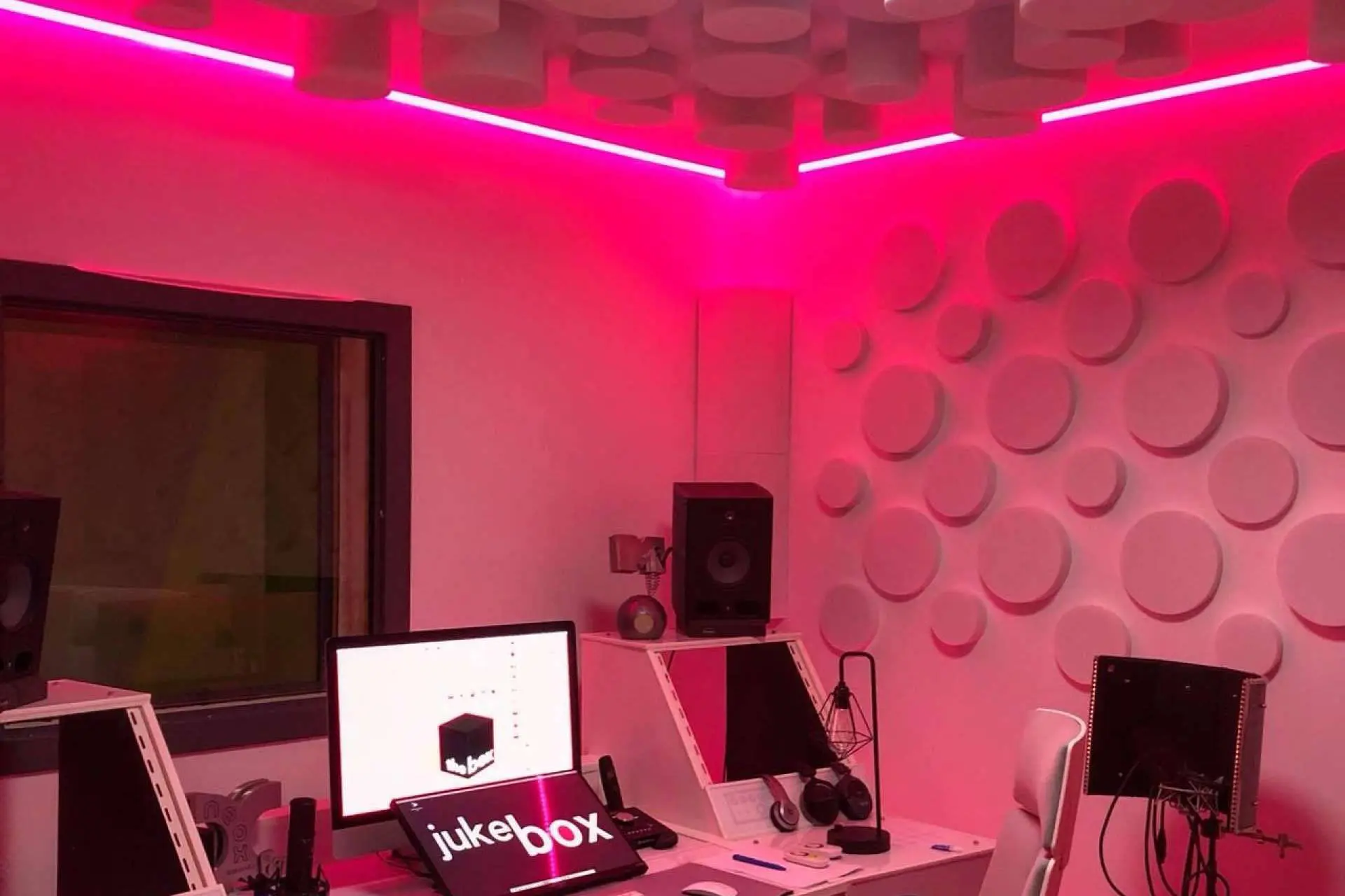 Para obtener un rendimiento óptimo a nivel acústico, hay que considerar el tipo de espacio que se desea instalar, el cual puede ser destinado plenamente a la grabación, o puede ser un estudio polivalente, que sirve al mismo tiempo para grabar un podcast o hacer una transmisión en vivo. Las locaciones donde se montan estos espacios suelen presentar problemas de rebote en las ondas sonoras, lo que genera reverberación y, consecuentemente, desdibuja la calidad del sonido.