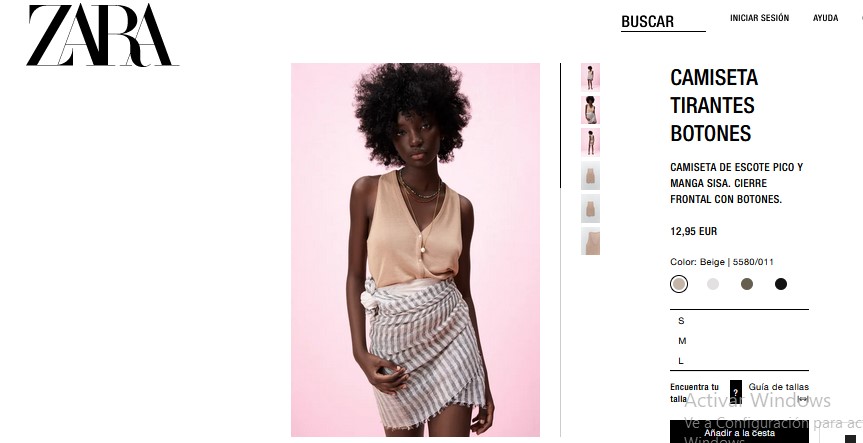 Es otra de las hermosas camisetas de tirantes con botones, que se puede conseguir en Zara, y que cuenta con un diseño fantástico e increíble. Por lo que, es perfecta para ser usada en cualquier momento del día, incluyendo en reuniones de amigos y familiares. Tiene un diseño de escote pico y unas mangas sisa, además un cierre frontal con botones. Además, son fabricadas en 90% de viscosa y 10% de poliamida, siendo una de las más adquiridas ya que solo cuesta 12,95.