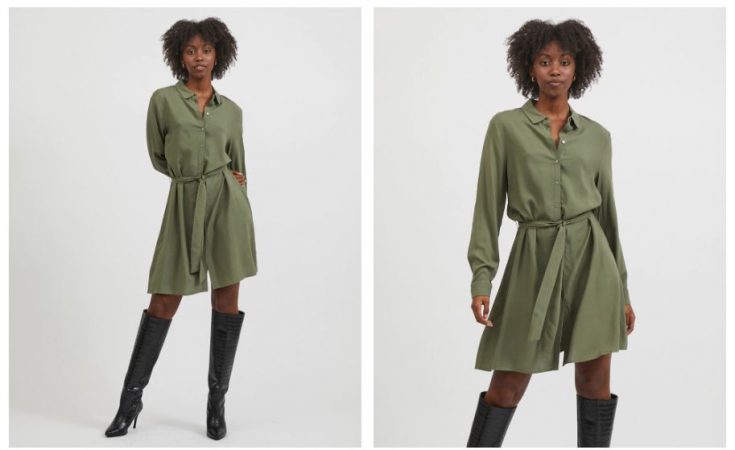Volvemos con lo midi y con unos asequibles 39,99 euros para otro vestido vaporoso y fresco perfecto para fiestas veraniegas y ocasiones especiales. Vila también tiene ya su nueva colección de primavera-verano en El Corte Inglés y este modelo se vende en varios colores: azul claro, verde oscuro, lila, multicolor, negro y musgo. Como ves es un vestido de lo más cómodo y vaporoso y que lleva siendo tendencia en cuanto a la tipología camisera hace ya tiempo. Está además fabricado en tejido sostenible. Tiene cierre de botones y cinturón, con cuello clásico. En este enlace lo puedes comprar.