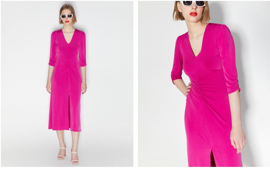 No abandonamos los vestidos largos con esta opción perfecta para salir de fiesta, un modelo muy pensado para la noche, con el que destacarás en estas ocasiones tan especiales. En este caso nos quedamos con este vestido midi frunce en color verde agua y fucsia con cuello pico y abertura delantera. Un vestido sencillo y a la vez sofisticado que ahora tienes en El Corte Inglés por solo 25,99 euros. Lo puedes adquirir rápidamente en este enlace.