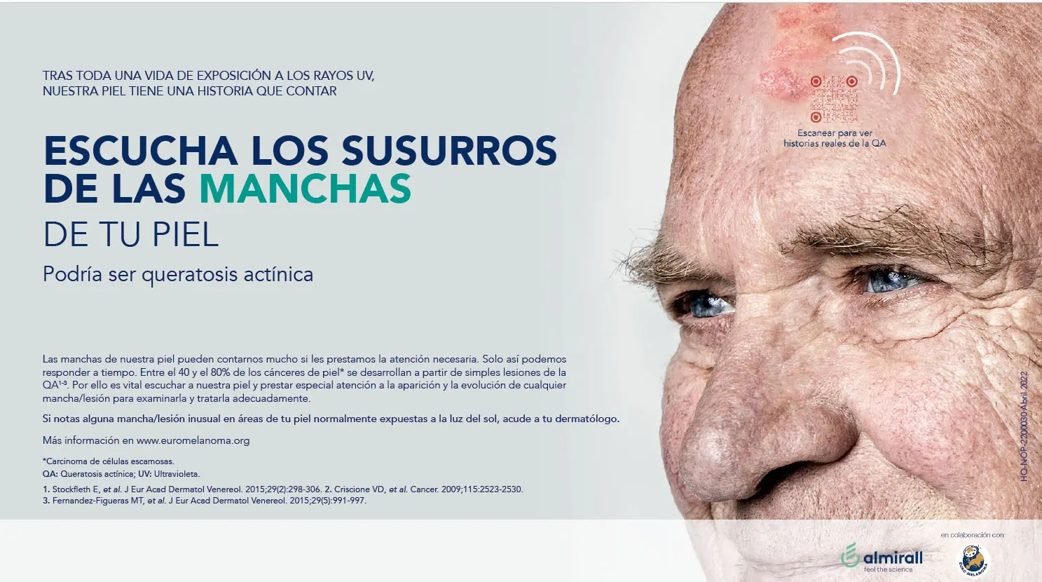 En el marco del Día Internacional de la QA, Almirall ha lanzado la campaña ‘Escucha los susurros de las manchas de tu piel’ para destacar la importancia de prestar atención al aspecto y evolución de cualquier mancha para revisarla y tratarla adecuadamente por un dermatólogo.