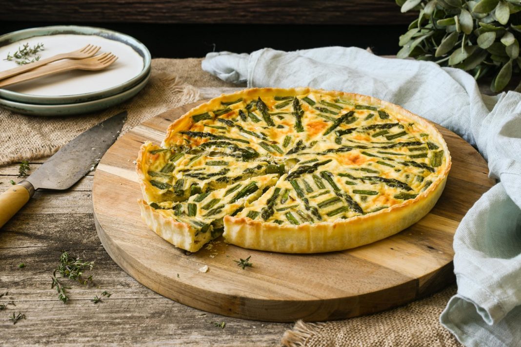 Pon la masa quebrada en un molde y añade los tres huevos batidos con los espárragos y las anchoas troceadas, así como el contenido del brick de nata para cocinar. Mételo en el horno 20 minutos a 200º C.