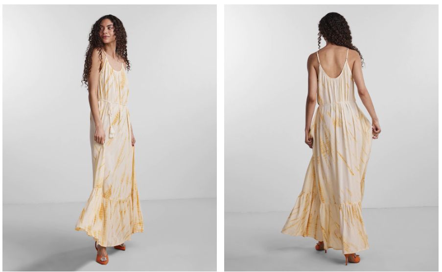No pueden faltar los vestidos en esta selección. El tye dye también está pegando fuerte, así que no puede faltar este desenfadado estampado en nuestras prendas más veraniegas. La marca Yas nos ofrece este vestido largo de tirantes, fabricado en 100% viscosa, suave y ligera, en tonos amarillos con el clásico tye dye de inspiración hippy.