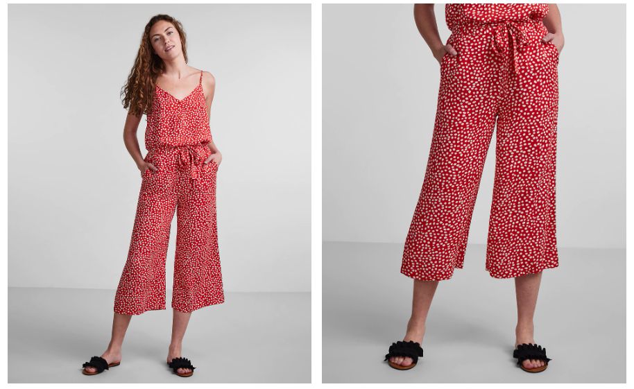 El pantalón culote ha conquistado corazones y armarios, por su comodidad y porque son increíblemente favorecedores. Estos de la marca Pieces son de un alegre color rojo, y están fabricados en 100% viscosa, por lo que son muy frescos y cómodos hasta en los días más calurosos.