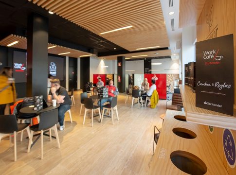 La expansión internacional de estas megasucursales se completó a finales de 2020 con la apertura de la sucursal de Estados Unidos, en el distrito de Brooklyn de la ciudad de Nueva York. El espacio neoyorquino sirve como un lugar de reunión y ofrece eventos gratuitos, networking y programación diseñados para ayudar a las empresas locales. Aunque la sucursal está abierta para todos, los clientes de Santander tienen un descuento exclusivo del 30% en bebidas artesanales compradas con una tarjeta de crédito o débito del Banco. “Tiene una calificación de cinco estrellas en Google. Si lees las reseñas, encontrarás decenas de comentarios sobre cómo nuestro equipo va más allá para que todos sean bienvenidos”, señalaba hace unos días Ana Botín en Linkedin. Y añadía: “Cada Work Café está diseñado para satisfacer las necesidades de sus clientes locales. En Brooklyn, esto significa que el espacio se centra en el coworking. Los jóvenes empresarios vienen aquí para dirigir sus negocios, desarrollar ideas y obtener asesoramiento o capacitación”.