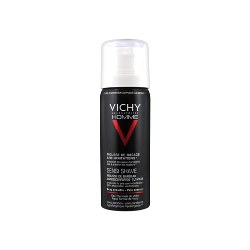 En su misma dirección, y siendo de los productos que tienen un mayor descuento dentro de esta selección para el afeitado en El Corte Inglés, observamos otra espuma de afeitar, esta vez de Vichy Homme.