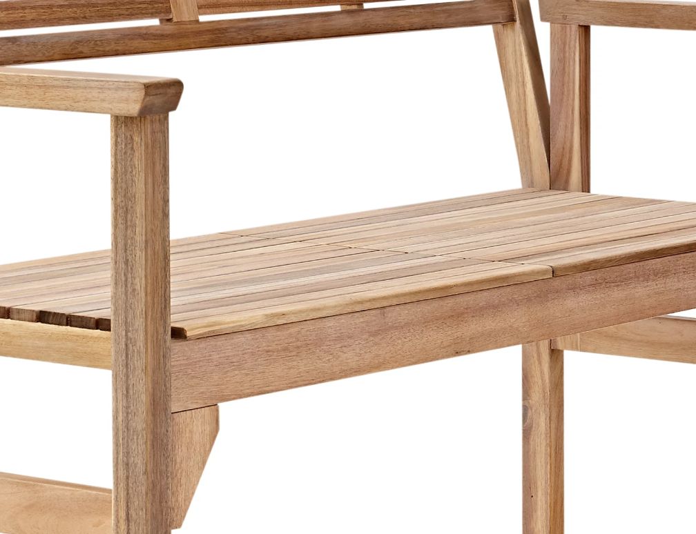 Fabricado en madera de acacia con certificado FSC, es especialmente resistente tanto al sol como a la lluvia. Incorpora brazos para favorecer la comodidad y, además, puedes guardarlo totalmente plegado.