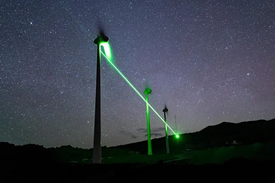El representante de Enel Green Power en Canarias, Manuel Ortega, explica que “el sistema se acciona de manera automática a las 21.00 horas y se desactiva a las 7.00 horas del día siguiente, todo mediante un patrón preconfigurado. El haz de luz no sobrepasa la línea del horizonte y justo finaliza en el último aerogenerador del parque, de acuerdo a lo previsto y solicitado por las distintas administraciones intervinientes”. Además, se continuará con las laborares de seguimiento del Parque Eólico de Fuencaliente.