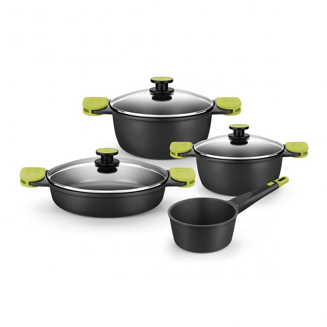 Si hay algo que supone un gran cambio en el menaje de tu cocina es el cambio de toda la batería. Si quieres algo más completo y profesional, aprovecha el descuento de El Corte Inglés en esta batería de la máxima calidad de Foodie Bra por tan solo 159,20 euros. Puede parecer mucho pero no lo es porque hablamos de 4 piezas para cubrir todas las necesidades de elaboración culinaria: 3 cacerolas de diferentes diámetros y un cazo de 16 cm realizados en resistente aluminio.