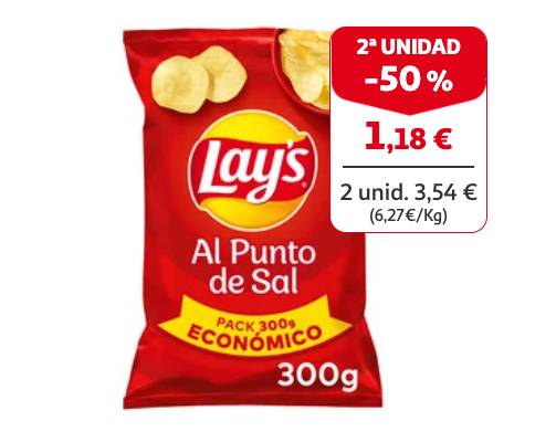 Las patatas fritas no pueden faltar cuando vas a disfrutar de un día de playa o piscina, o si sales a comer al campo. En esta ocasión te proponemos disfrutar de las Lay’s al punto de sal en su formato de bolsa de 300 gramos.