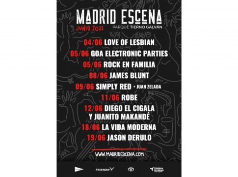 Estas actividades se englobarán a lo largo de todo el mes de junio junto a un gran cartel internacional protagonizado por nombres como Jason Derulo, James Blunt o Simply Red. Además, Madrid Escena también contará con los espectáculos de grandes artistas nacionales de la talla de Love of Lesbian, Robe Iniesta, El Cigala o Juanito Makandé.