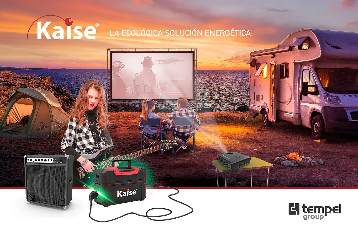 Las baterías portátiles KAISE, comercializadas por la empresa especializada en el campo de la energía, son bancos de energía portátil aptos para aparatos con consumos máximos de 450W. A través de sus puertos es posible conectar dispositivos digitales como ordenadores, drones, móviles o televisiones, entre muchos otros dispositivos