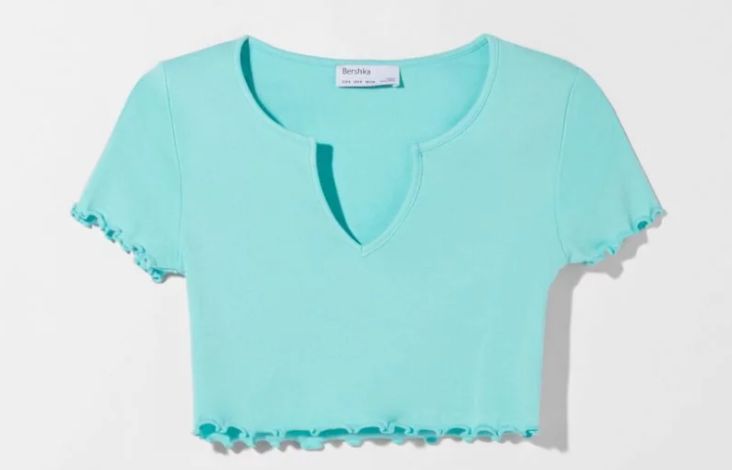El estilo crop llegó para quedarse hace varias temporadas, incluso hemos visto propuestas invernales con este tipo de diseño. Esta camiseta de Bershka es ideal como fondo de armario, porque puede funcionar como un básico, pero con el añadido de tener un corte más original. Es corta, con un escote redondo y una abertura decorativa, y los bajos con una bonita forma ondulada. Es de la colección ‘Care for fiber’ y está fabricada con al menos un 50% de algodón orgánico, proveniente de cultivos donde se us an pesticidas y fertilizantes naturales. Está disponible en cuatro colore: negro, rosa, turquesa y blanco roto, y cuesta 5,99 euros.