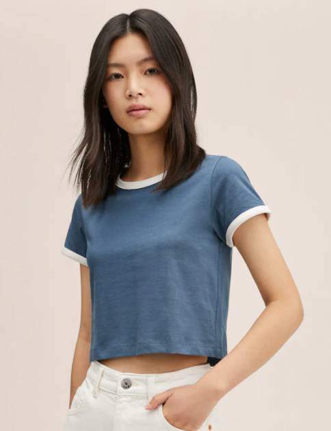 El diseño con vivos en contraste es otro clásico de la moda que hacía algunos años que no veíamos y que ahora ha vuelvo con fuerza. Buena prueba de ello es que en Mango podemos encontrar varias versiones de esta camiseta.