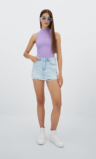 Si quieres un ‘look’ estiloso, pero que al mismo tiempo te pueda dar esa libertad de movimiento que puedes andar buscando, este short denim que vemos en Stradivarius será una de tus mejores elecciones. En la tienda de moda se ve como un skort en el que todas las miradas se centrarán en esta increíble pieza de vestir que promete romperla durante todo el verano. Con diferentes tallas a elegir, tiene un precio de 19,99 euros.