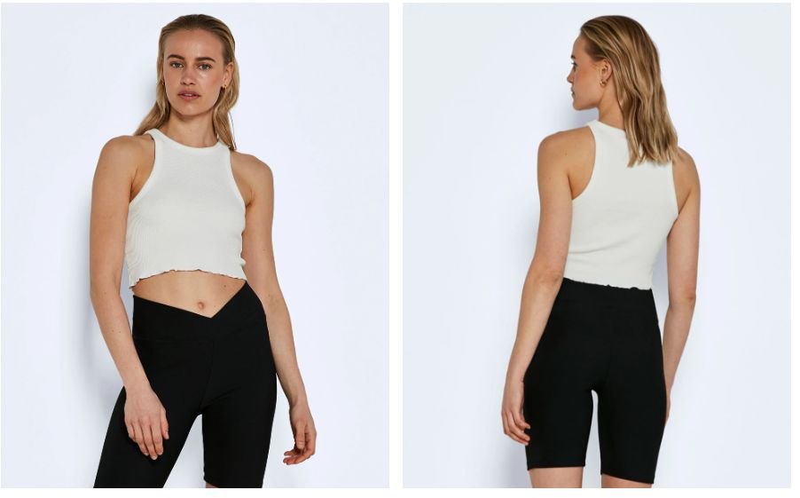 Las camisetas y los tops de estilo cropped están en tendencia, con lo que veamos otra. Son ideales para combinar con faldas o pantalones de talle alto, y el resultado es muy estiloso y femenino. Este modelo también es de la marca Noisy May, y está confeccionado con tejido de algodón y elastano, por lo que se ajusta perfectamente a la silueta. Tiene tirantes anchos y cuello redondo estilo halter. Está disponible en blanco y en verde botella, y tiene un 30% de descuento, así que te la puedes llevar por 10,49 euros. Si te gusta pídela en este enlace.