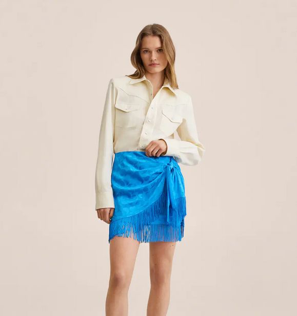 Esta camisa va a ser una de las prendas más demandadas de todo el verano en la tienda online de Mango. Y si no, al tiempo. Destaca por tener un estilo cowboy que es muy original. Además tiene la manga larga con los puños abotonados y dos bolsillos a lo largo del pecho junto con unos elegantes ribetes decorativos. Su precio es de tan solo 49’99 euros.