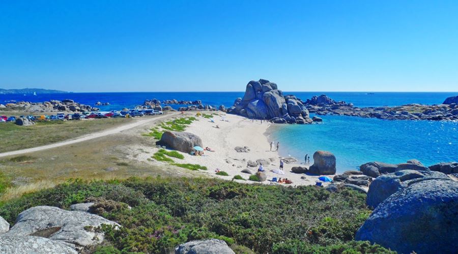 En las Rías Baixas hay unas cuantas playas que parecen traídas del Caribe (la única diferencia es las temperaturas de sus aguas). Por ejemplo, la cala de O con Negro, a 35 kilómetros de Pontevedra. Es una cala de arena fina y blanca, completamente virgen y situada en un rincón aislado. El acceso es algo complicado, y gracias a esto es un rincón increíblemente tranquilo, incluso durante temporada alta.