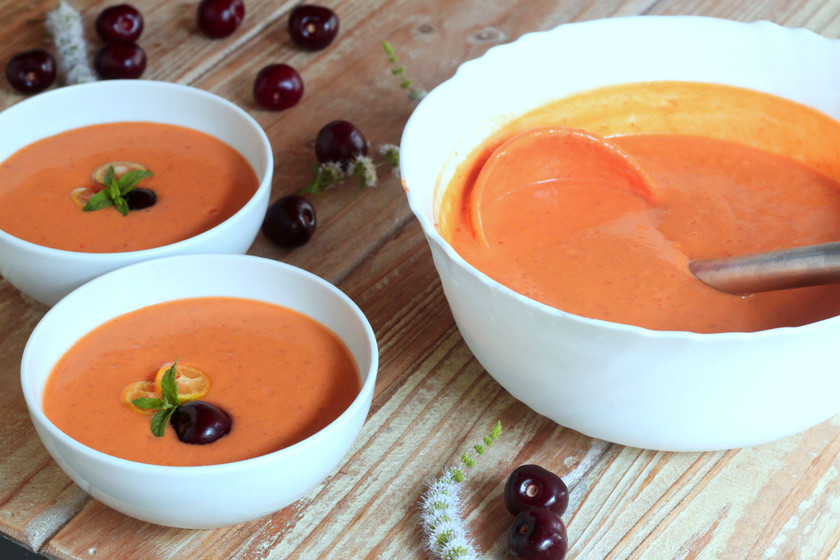 Las recetas frías son las grandes protagonistas del verano porque, gracias a ellas, no pasamos mucho tiempo ni mucho calor en la cocina. Además, son ligeras y no sobrecargan nuestro estómago. Y eso es justo lo que ocurre con el gazpacho de cerezas.