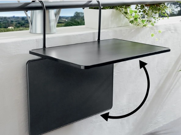 Lidl también cuenta con esta mesa colgante para balcón plegable para ahorrar espacio, con una sujeción sencilla a la barandilla del balcón. Tiene una altura regulable en tres niveles. Cuesta 14,99 euros, pero ha recibido algunas quejas. Al parecer no llega en buenas condiciones a los clientes. Tiene una muy mala calidad. Los soportes de suspensión son de diferentes longitudes, por lo que la mesa siempre cuelga torcida en el balcón. Incluso alguien contó que desafortunadamente, después de la primera lluvia, ¡las páginas se hincharon!