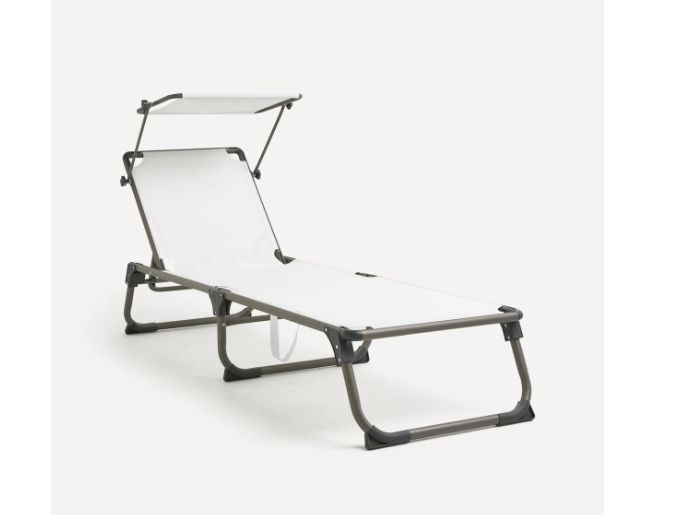 Es una tumbona con estructura de aluminio y tejido de multifibra, un material resistente y de fácil mantenimiento. Es ligera, plegable y lleva asas para que puedas transportarla con facilidad, además de incorporar un ese toldo regulable y extraíble. Se precio es de 79,95 euros y la puedes comprar aquí. Te dejamos otras ofertas.